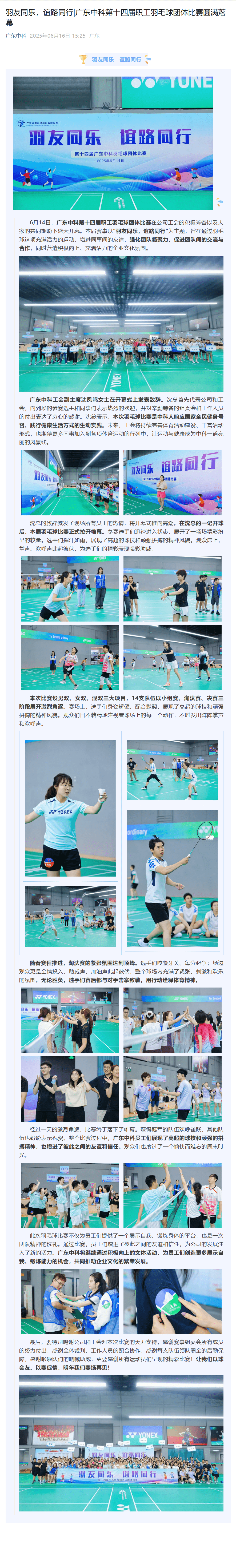 羽友同乐,谊路同行|广东爱游戏手机登录入口-爱游戏(中国) 第十四届职工羽毛球团体比赛圆满落幕
